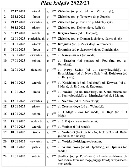 08:30-09:30 – ul. Opolska, Winna G., Kościelna, Podleśna, Brzeska i Skośna;
